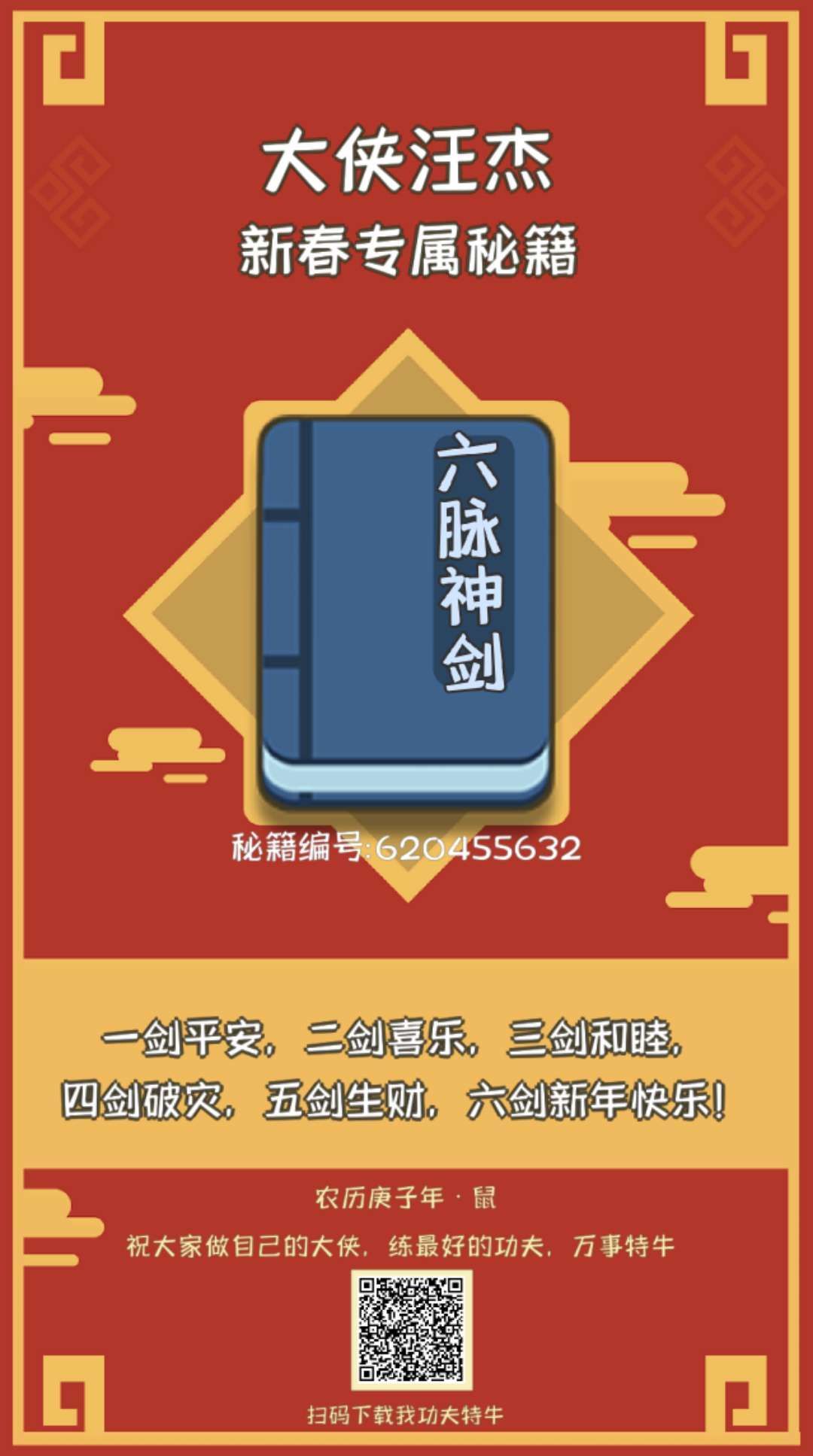 我有一本绝世武功要传授于你!来《我功夫特牛》,输入我的秘籍编号 【620455632】,一起称霸武林!