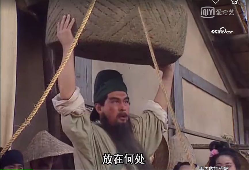 此时,市中卖绿豆的关羽,力大如牛,轻松地将磨盘卸下并将肉分与众人。