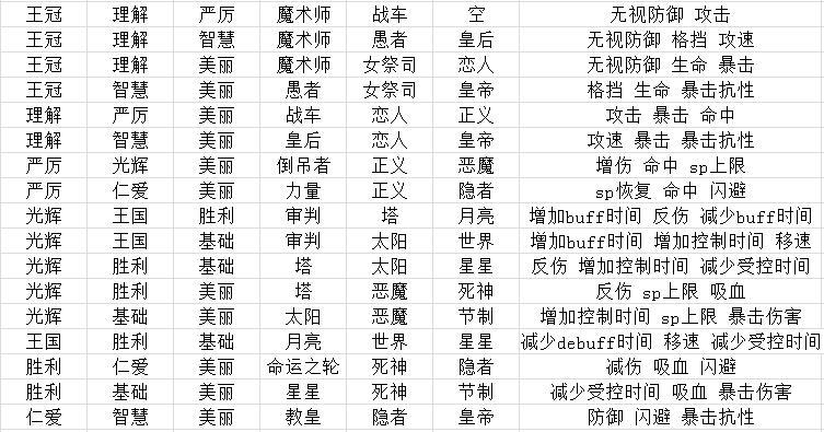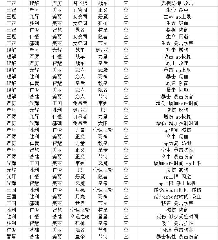 于是用excel统计了一下(三种质点属性只能激活一条组合的没有列出来)