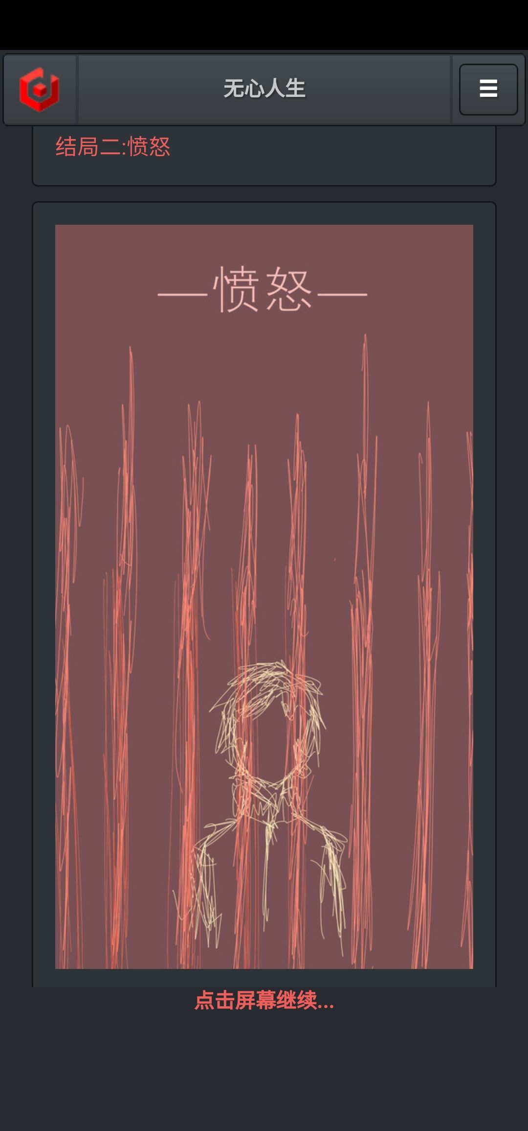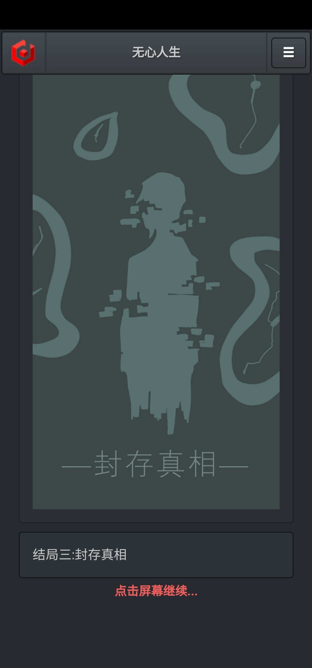 这个游戏比较“休闲”,因为熟练的话,全部结局再次打通只需要约十分钟,但是却又压抑,因为它太真实了,就发生在我们身边,甚至自己身上。或许我们还未走到主人公那一步,却也感同身受。