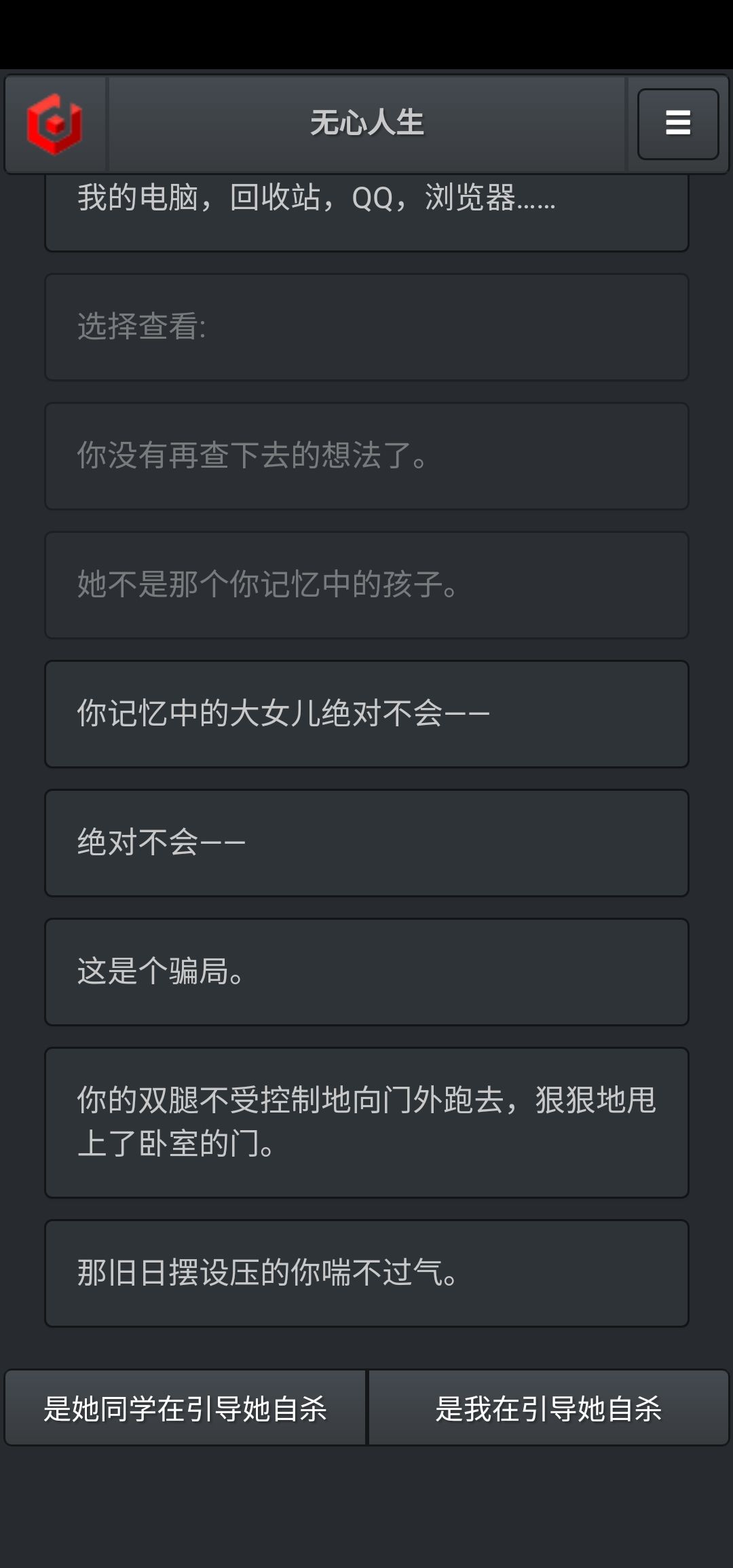 【然后读取存档“是谁在引导她自杀”】