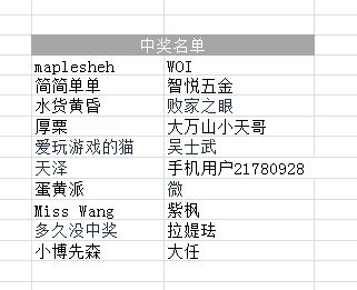 公布一下中奖名单:
