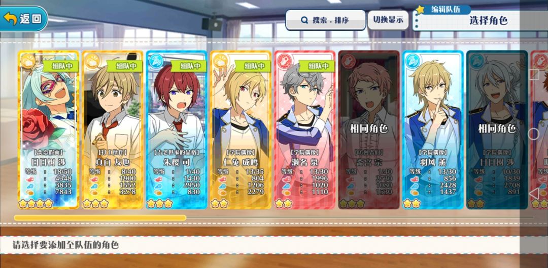 这里第一编队是没有宗的,编辑的时候想把濑名泉换下来上宗,但为什么显示有相同角色