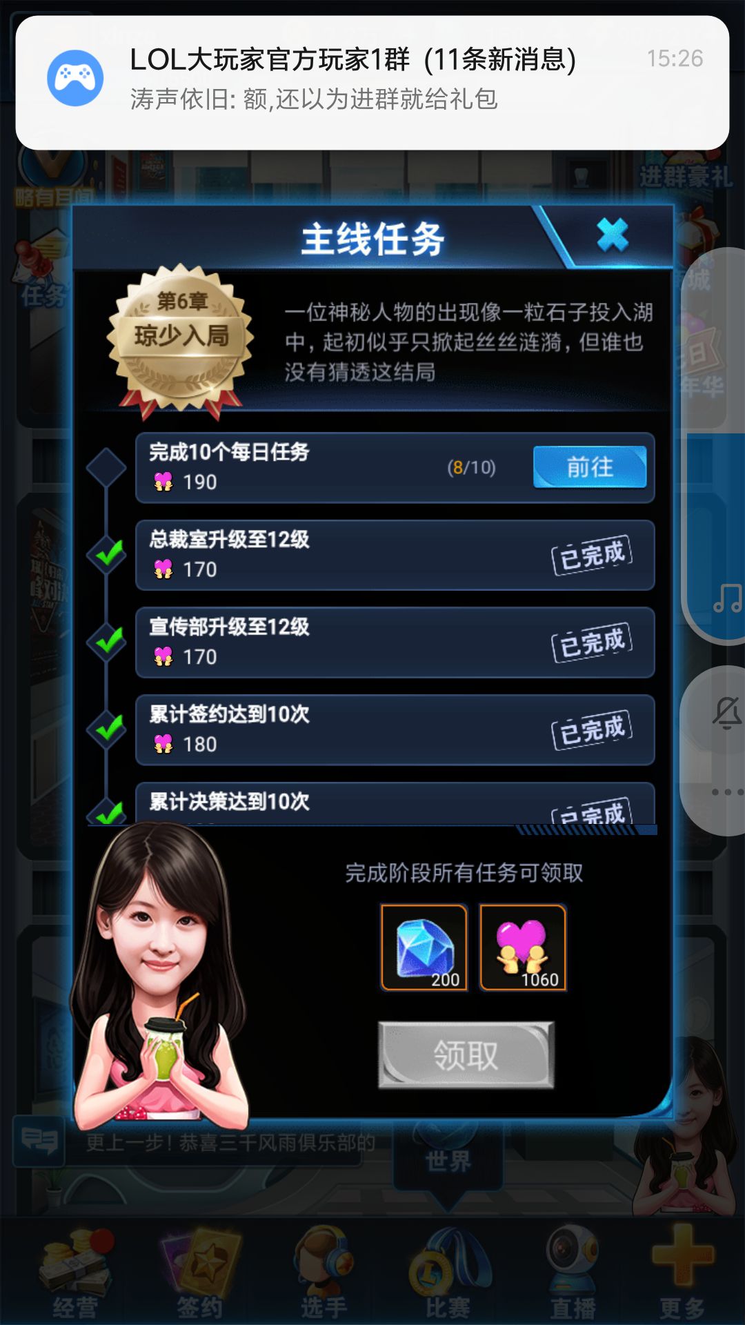 还有直播系统也要找两个直播属性高的选手直播,也有不少奖励