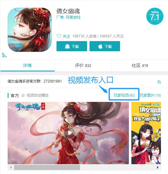 各位少侠需要在规定的活动时间内将倩女相关主题视频发布在【倩女幽魂】视频区,然后将TapTapID、TapTap视频链接 贴在本帖下方,并标注【我要参赛】。