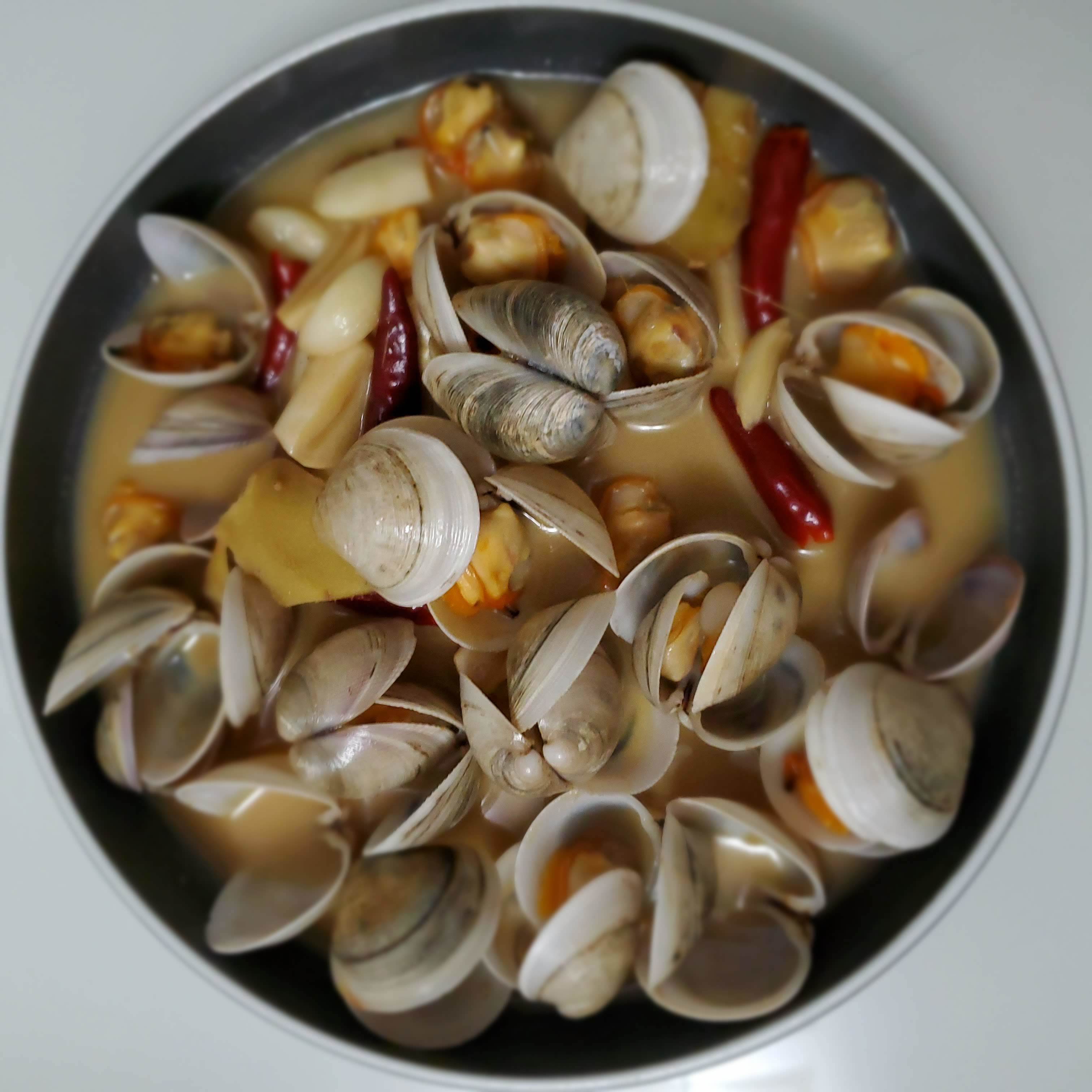注:ge蜊可以多买点,免得不够吃。辣椒、清酒之类的放多少,要不要放,可以看自己口味,最后生抽切记不要倒太多,免得偏咸。