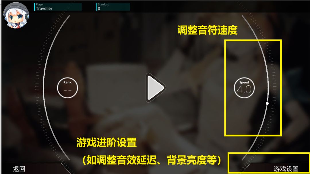 在选择歌曲之后,可以调整音符速度(Speed)