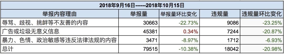 九月下半月及十月上半月举报总量为79515条,相较八月中到九月中总量,同比减少10.38%举报实际处理量为18042条,同比减少20.98%,十一长假让举报总量小幅增长但总量还是不及暑期。举报成功率22.69%,相较同期小幅下滑。