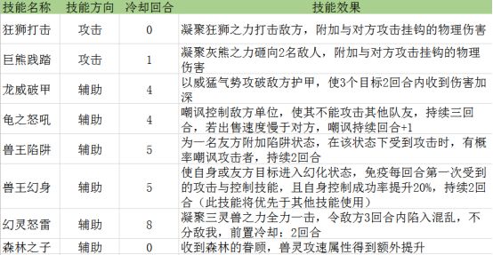 可以看到攻击技能只有两个,而且伤害还是取决于对方的攻击力,可以说兽灵并不是一个擅长输出的职业,但是我们看兽灵的技能效果,“伤害加深”,“嘲讽”,“混乱”等等,均是一系列对敌方的DEBUFF,特点决定加点,目前主流有以下加点方式: