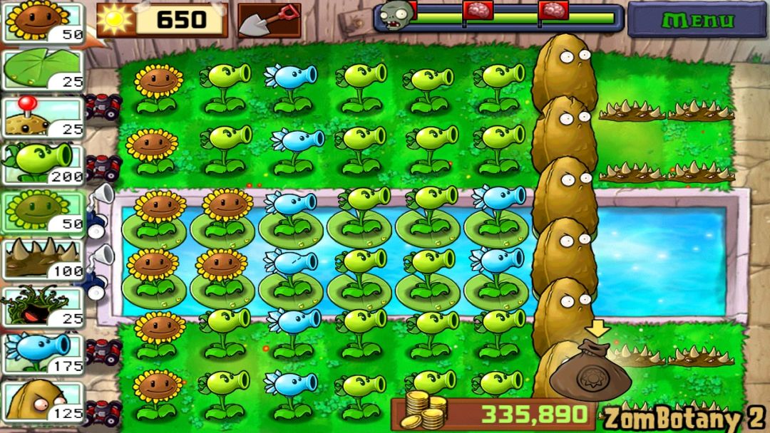 植物僵尸正常打法,带高建国挡子弹,地刺两排就可以戳死普碗,寒冰减速,水草解决前期水路僵尸