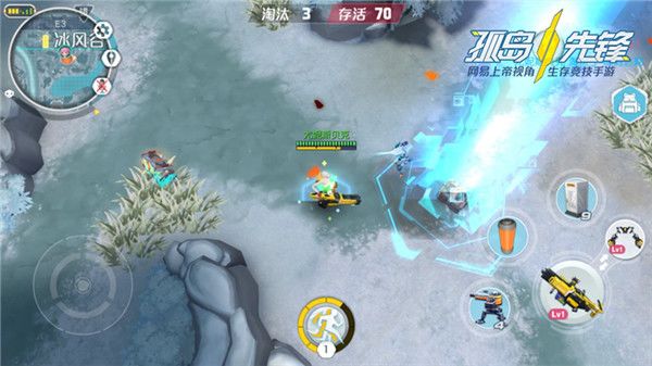 其中场景结合道具的玩法也是《孤岛先锋》的玩法精髓。当捡到威力巨大的电磁炮后,可以放置冰冻陷阱控制敌人,一套带走对手;火焰喷射器能点燃可隐身的草丛,让敌人无所遁形;而空间钩锁可以将玩家拉到不可移动的物体前面,玩家可利用空间钩锁,跨越沟壑及一些障碍物。多种玩法,玩家可自行打出自己的组合套路!