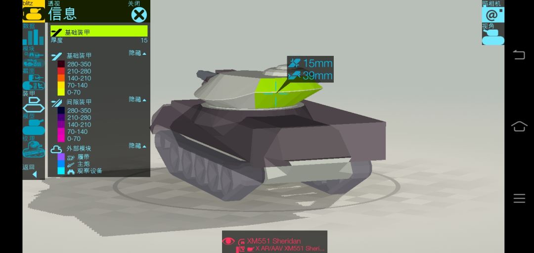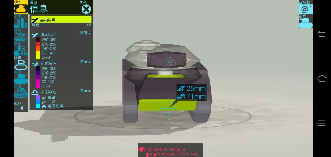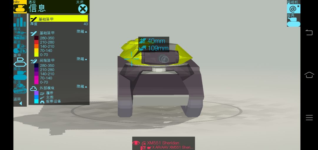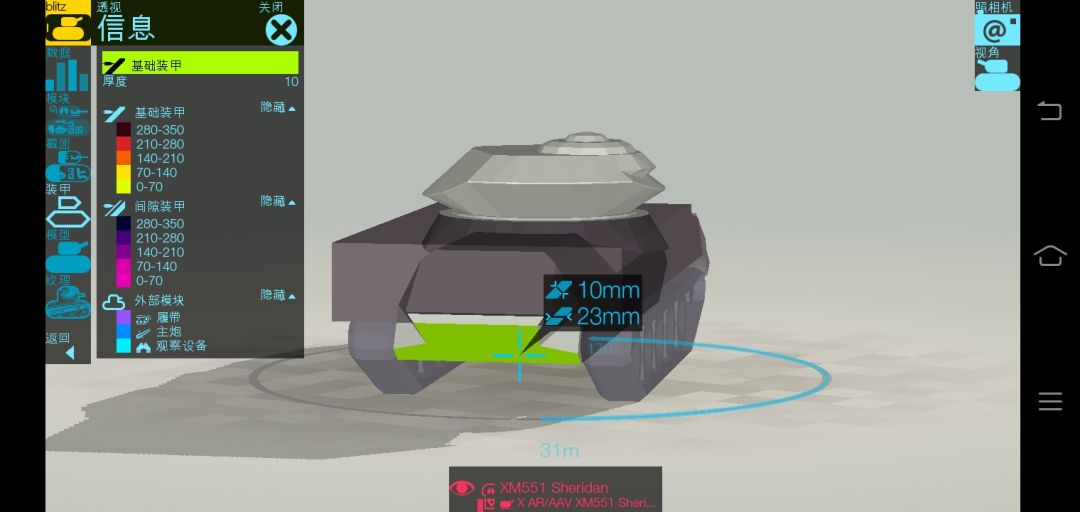 那些深灰色的都是间隙装甲,白色的不是,he可穿。(没测试过,但是我吧这个软件的数据调到的是闪击战版,有图为证)