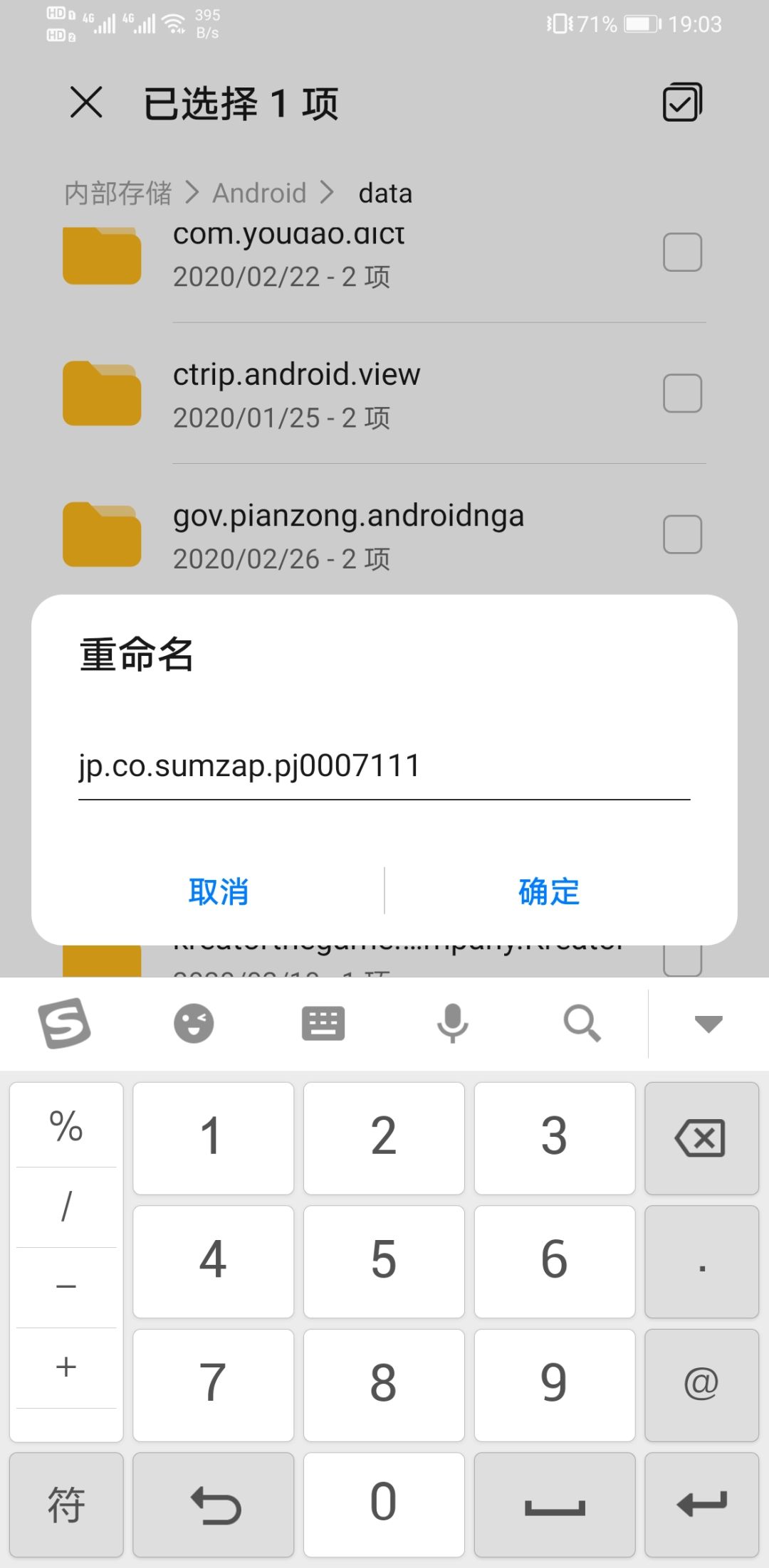 首先在文件管理里输入【0007】搜索到【jp.co.sumzap.pj0007】这个文件夹,这一步就不贴图了,一般是找到data里那个,把它随便改个名字,譬如在后面加个111