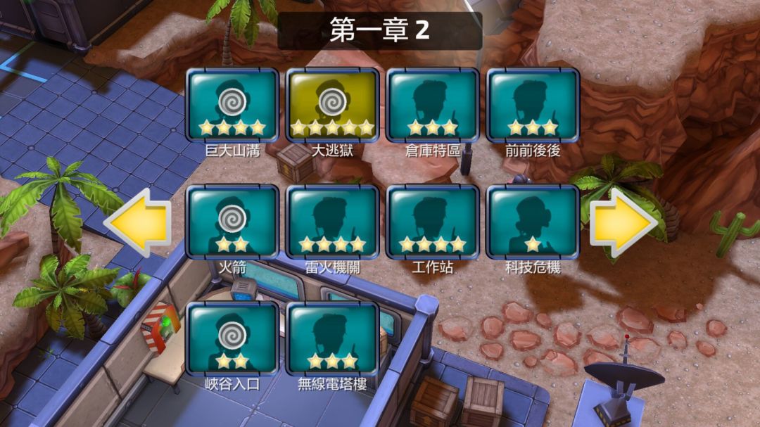第一章2:巨大山沟、大越狱、仓库特区、前前后后、火箭、雷火机关、工作站、科技危机、峡谷入口、无线电塔楼。