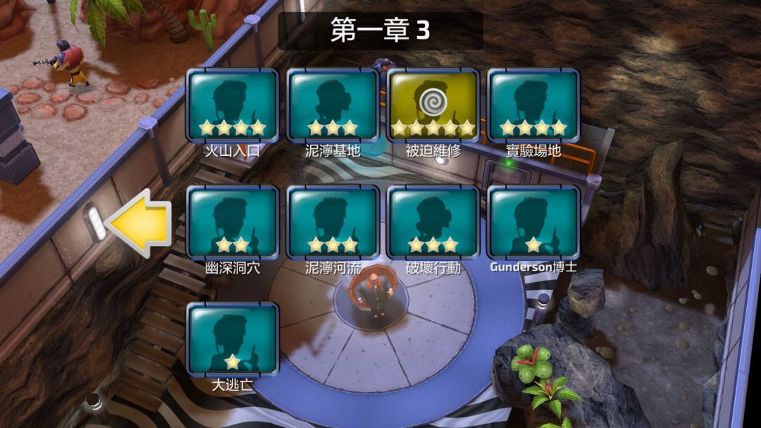 第一章3:火山入口、泥泞基地、被迫维修、实验场地、幽深洞穴、泥泞河流、破坏行动、冈德森博士、大逃亡。