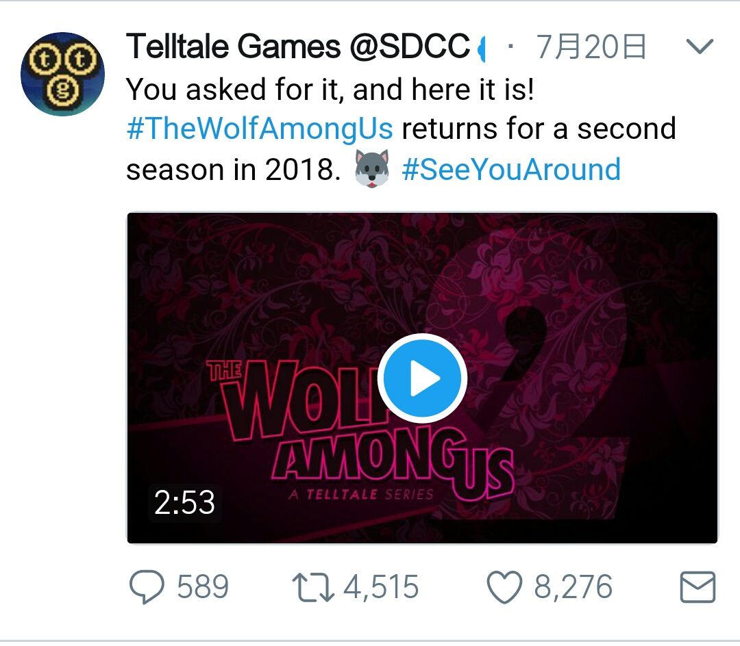 还记得我昨天曝光的《蝙蝠侠:内敌》吗?今天曝光的作品又是Telltale Games的新作!游戏原名《The Wolf Among Us: A Telltale Games Series》,早在四天前官推就发布了游戏预告片,但是并没有登录其官网的新闻板块,由于那个时候我还在关注《蝙蝠侠:内敌》的相关信息,所以就并没有仔细查看Telltale的官推。而就在今天,我在IGN看到了这款游戏的信息,才知道自己错过了“新闻”,现在都已经过去四天了。。。于是我赶紧去翻人的官推,找出了这款游戏的预告。