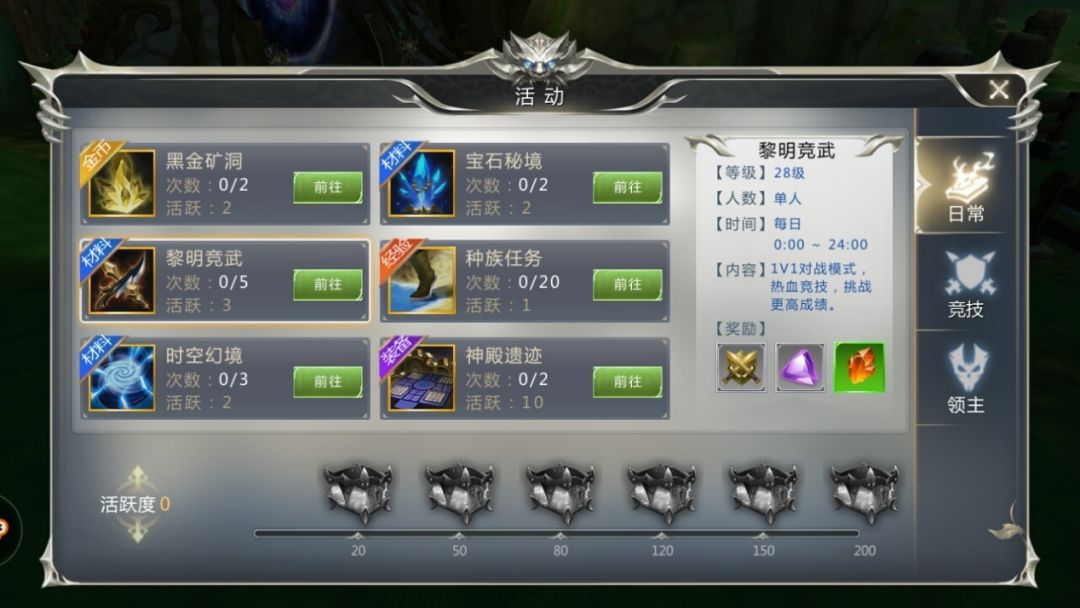在拥有一定实力后,是不是觉得打小怪没有意思了呢?是不是想要挑战自我,完成自我的突破呢?那么快来天衍竞武吧,这里有和你同样想法勇士,通过激烈角逐后,将会获得积分奖励,使用积分可以进行道具兑换。