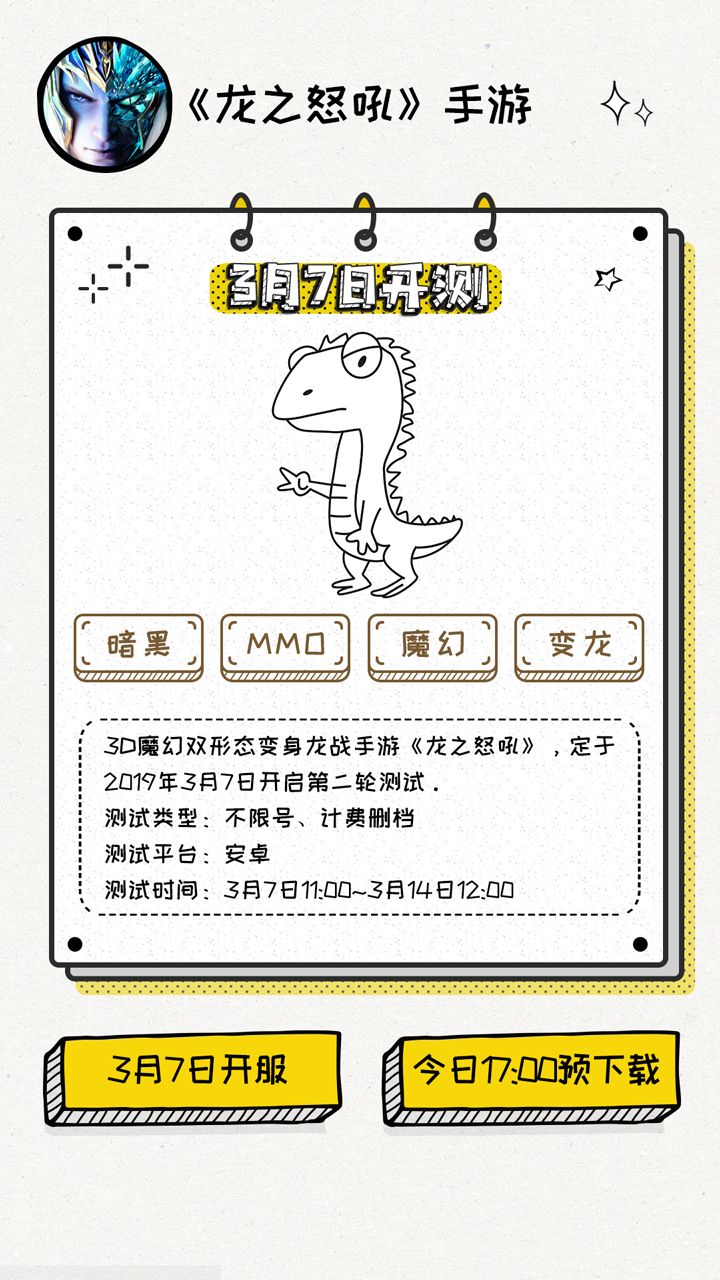 3D魔幻双形态变身龙战手游《龙之怒吼》,定于2019年3月7日开启第二轮测试。具体测试信息如下。