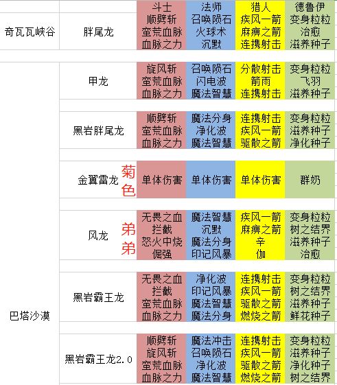 红色-斗士 蓝色-法师 黄色-猎人 绿色-德鲁伊