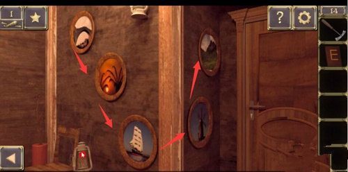 点击门旁的相框,得到提示和油灯;