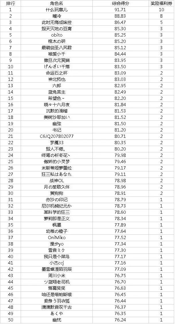 手办周边钻石皮肤体验卡应有尽有~除此之外,相信大家也看到了战绩旁边的排行榜,对于排行榜前50名召唤师我们都是有额外奖励的哦~上周排行榜名单如下所示,我们是每周结算一次排行榜,奖励会在每周一进行发放!