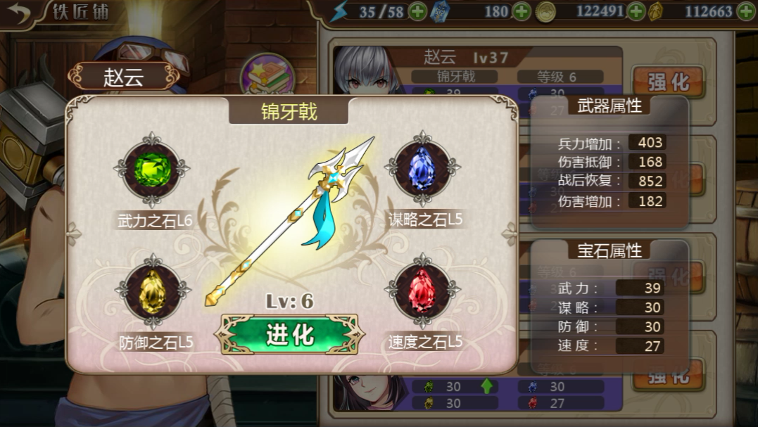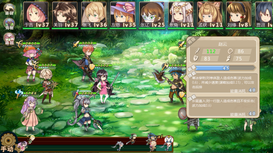 我方前下赵云准备对敌方上排发动技能长驱♂直入(打一行,不受反击,武力加成0.6),赵云现在满血,赵云属性,对方弩兵属性如下图: