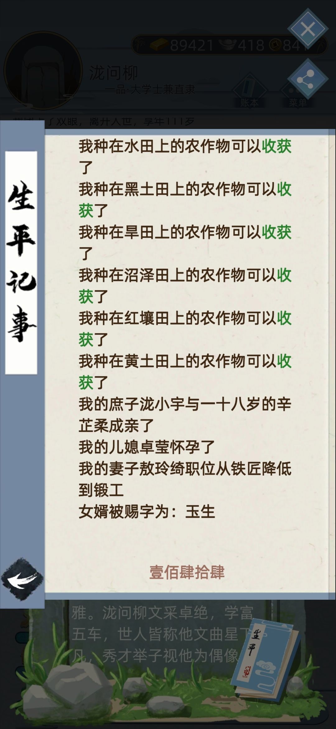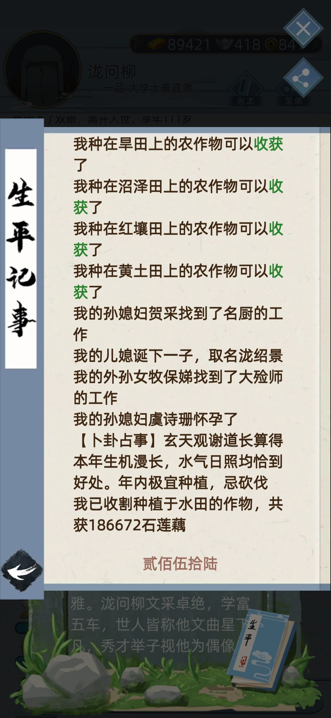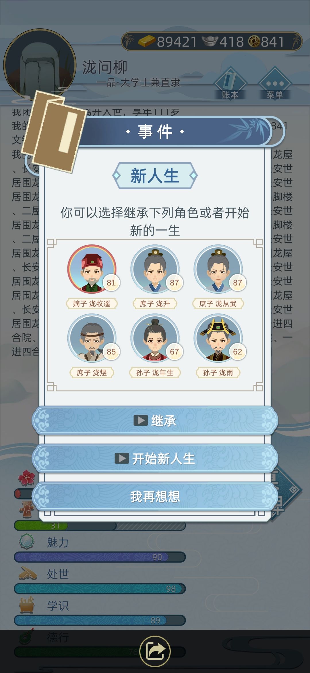 我死了以后就是这幅烂摊子,列表里没有我的继承人,然后我又去翻我110多年的生平事记,终于找到了我孙子龙绍景的爹是龙小宇,娘叫辛芷柔