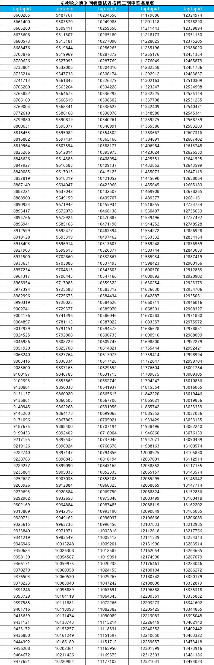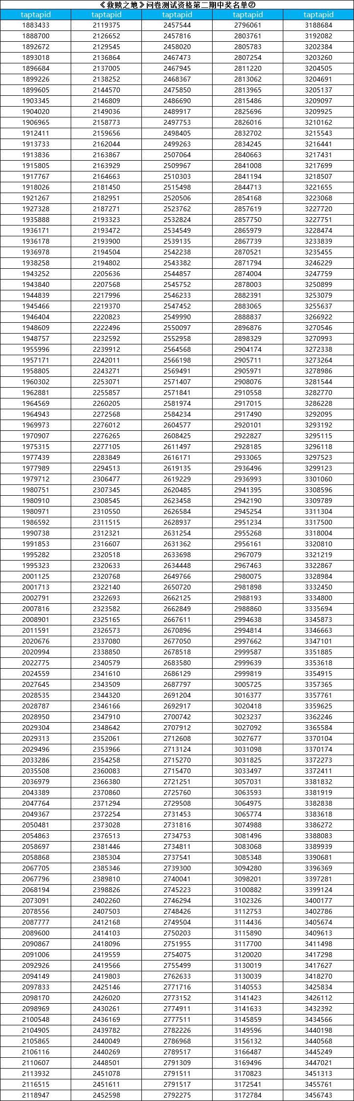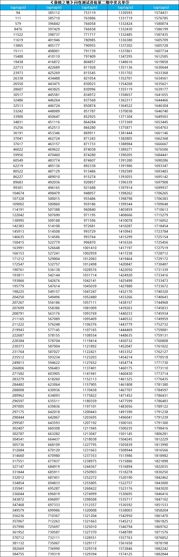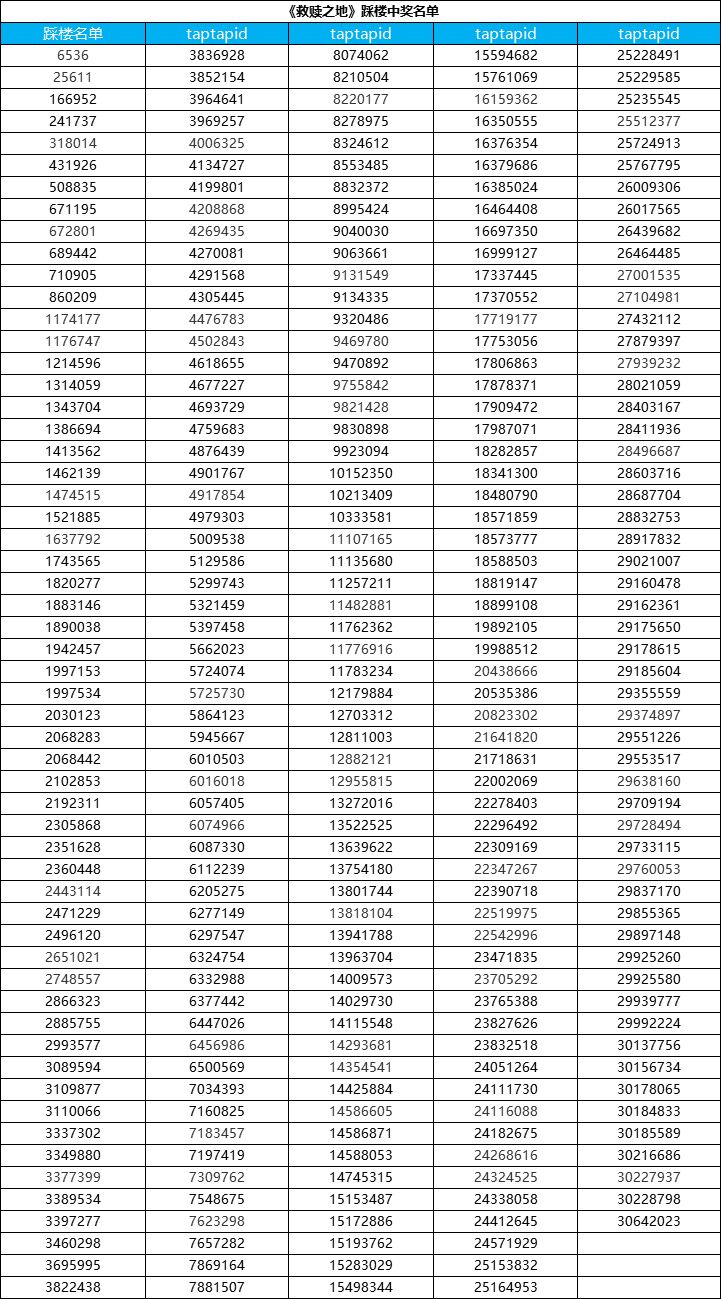 (本次只是公布测试资格名单,每个中奖tap账号id对应一个激活码,测试激活码最终统一发放时间:游戏开测前3-7天以TapTap站内信的形式发放。)