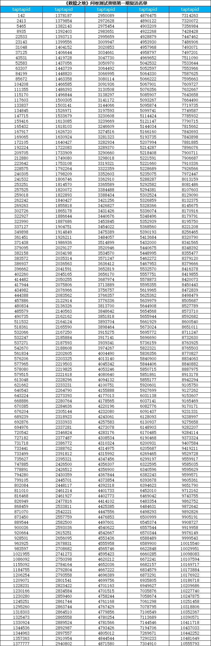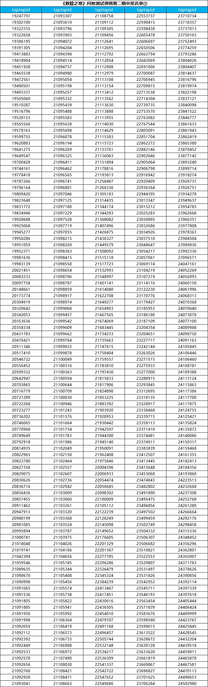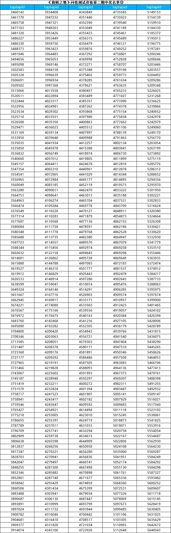 (本次只是公布测试资格名单,每个中奖tap账号id对应一个激活码,测试激活码最终统一发放时间:游戏开测前3-7天以TapTap站内信的形式发放。)