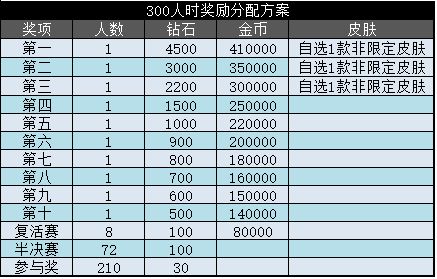 共招300人参赛,并且分段位招募,顺序为由高段往下取参赛选手,当人数超过300上限时则在报名选手最高段位中抽取参赛选手。 如:龙和熊段有200人报名,则在狮段随机抽取100人填补为参赛选手进行比赛。