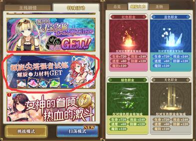 至此,主要消耗体力的功能都开全了,分别是素材经验金币三大时间试炼本、螺旋之塔、委托任务。试炼本关系到素材、经验石、金币的产出,其中素材、经验试炼重要性在大前期更高(金币本此时一般层数也低,现在有双倍次数体力,体力不够时适当放弃一些金币本我觉得也是可以的。但到了中后期,金币就是最重要的了,多余体力都去扫荡金币的)。螺旋之塔在大前期提升很大,关系到长时间的养成,扫不扫塔直接影响升级速度,也是试炼本通关之后主要应付的副本。委托任务主要就是关系到商店UR的兑换。玩家可以根据自身情况选择每日体力的分配。体力药视情况可以留一留以后可能会出相应活动(估计试炼次数加倍,也留不下来吧)。体力用不完的大佬可以再扫一扫试炼本,也就是扫荡模式那个。