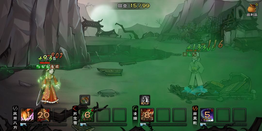 1: 碧波神功(阴)10聚气:鬼市购买残页合成——满级9400血量10聚气,高额回血,每回合额外增加内元(大约8点),辅助全队增加buff10%防御15%命中20%韧性。售价:50两×15,只是获取难度太大了,前排后排都行。