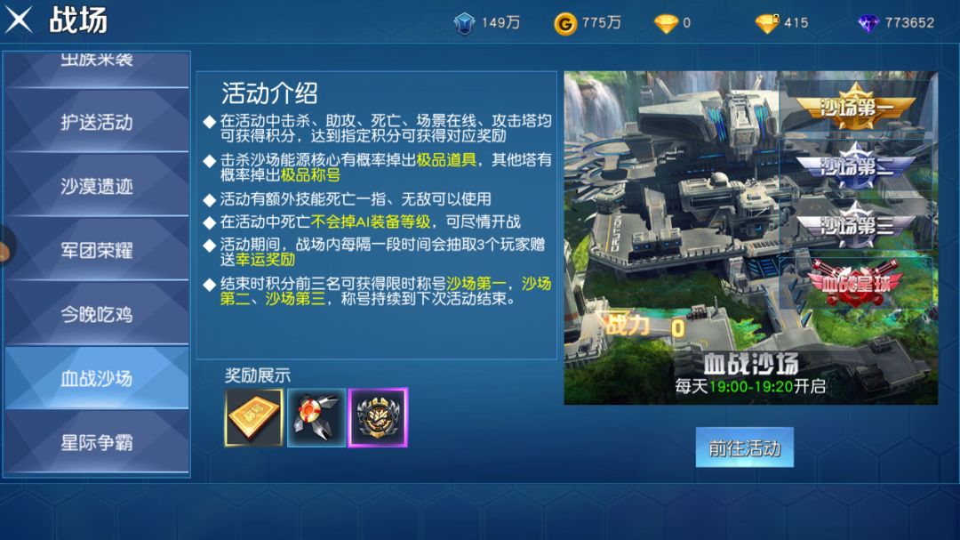 进入到战场界面后,大家选择血战沙场就可以参与活动副本啦