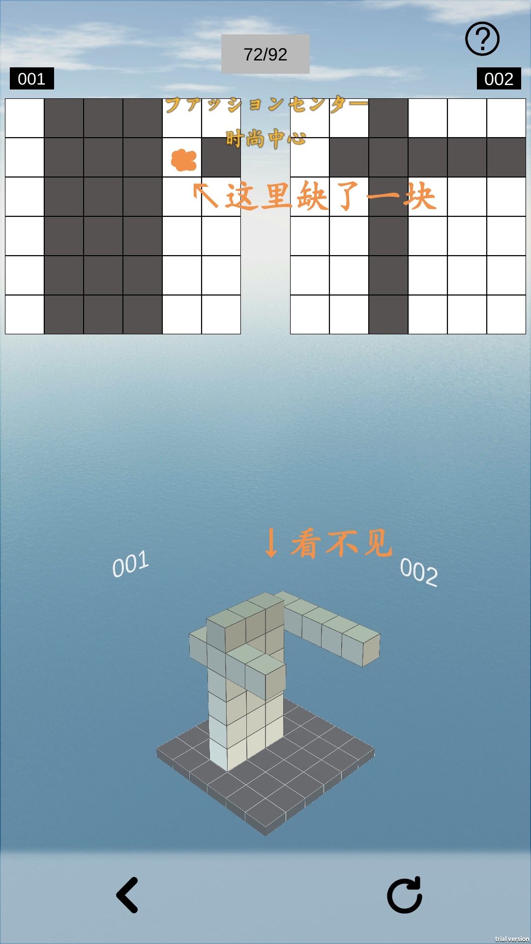 玩的时候卡在这了,到论坛翻了翻看见有人说后面是连着的,试了一下确实是连着的也过了,但是这关只看的话根本看不出来后面是连着的,也看不到缺的那个方块的丫←_←