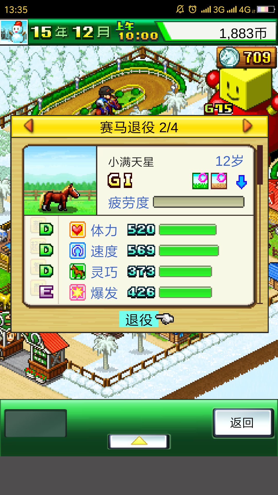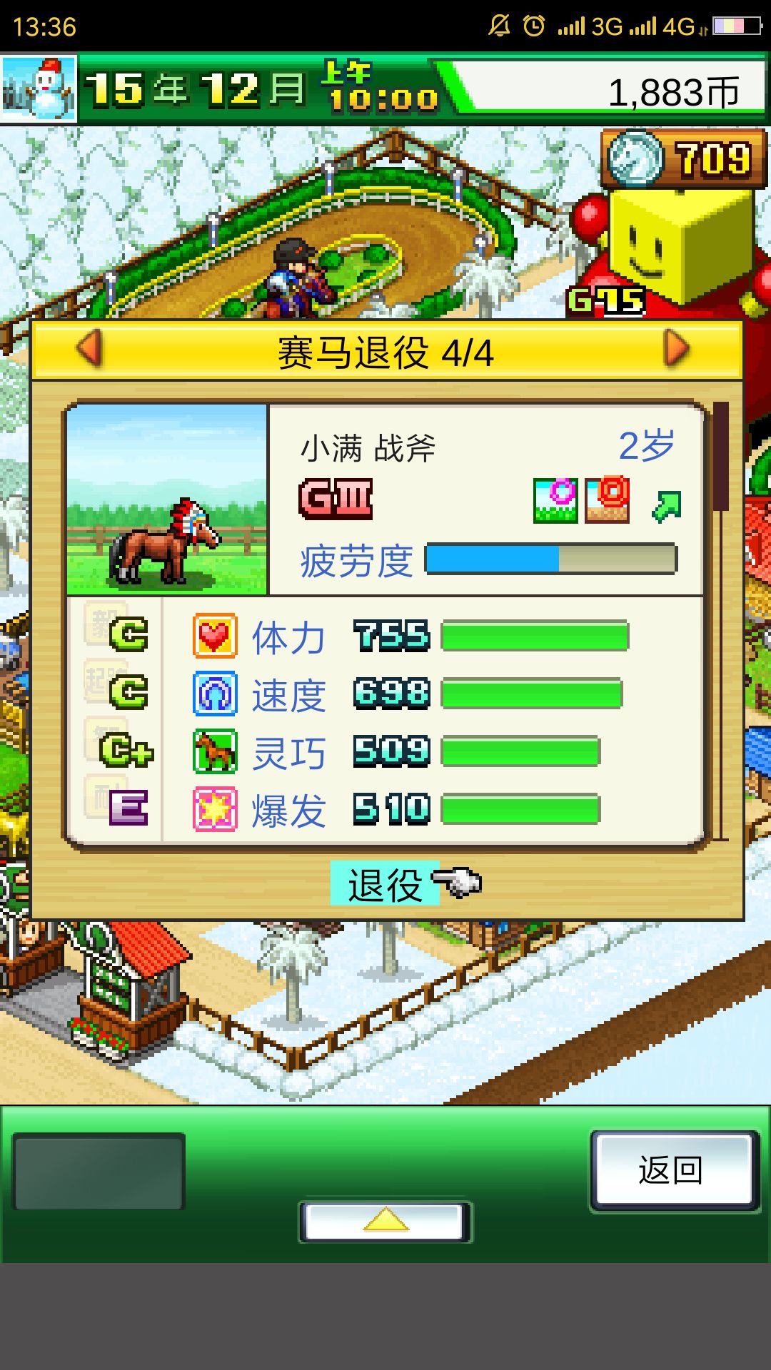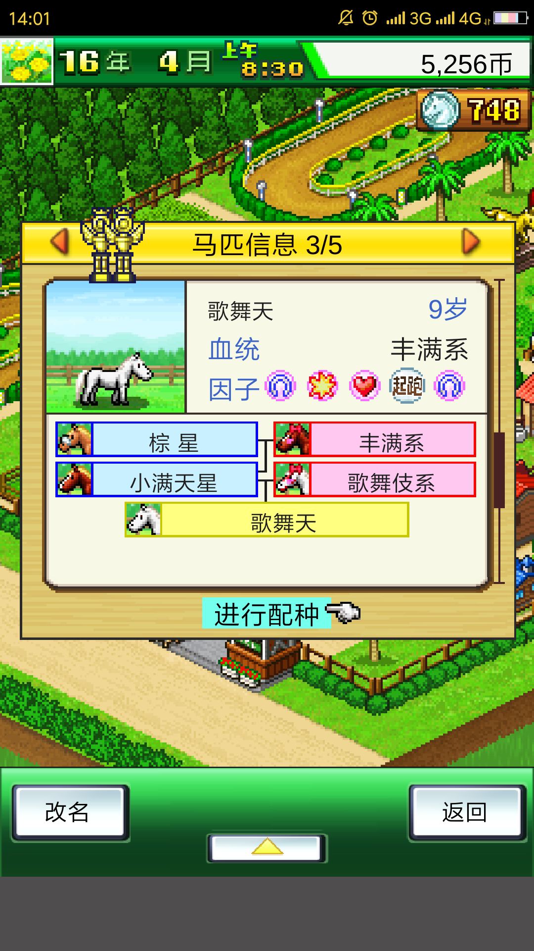 把你的第四匹马儿培养好你就可以称霸全部的大赛啦,这个血统的马非常完美,没有任何短板,数据非常高,唯一的缺点是耐力比较差,疲劳度恢复得慢。