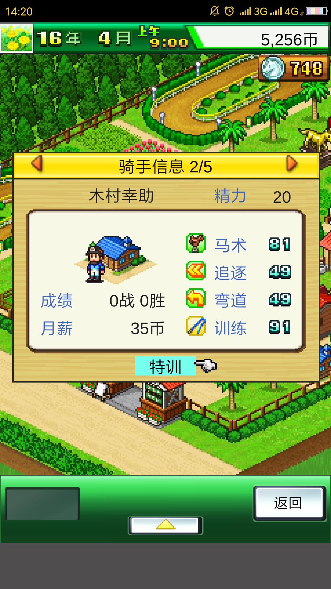 前中培养马儿的时候让它一直练速度就可以了,其他的能力用金钱来加到满就可以了,优先加满速度和训练场然后是体力,技能的选择也是一样的,优先体力和速度,当你的庄园系小马儿能力培养到巅峰后,人物也培养的差不多以后,你就应该可以打赢GⅢ或者GⅡ了,这个时候会刷出木村幸助,这是你第二个需要雇佣的训练家,不用去培养他,他的作用是前中期最强训练师,用来训练你的第二匹马儿。