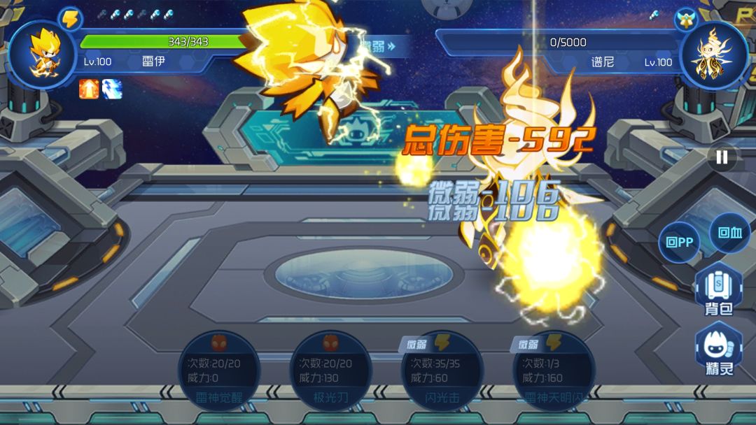 所以队伍里面带一个普通系划水就行,然后带米卡,等谱尼没pp切出来用阳光普照耗血,米卡是不能强化的估计是bug,等米卡耗血达到2000,然后切雷伊,强化,然后大招必中,给谱尼最后一击。