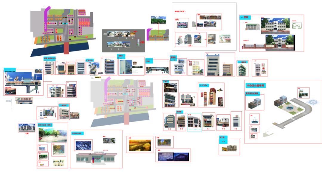 经过多次的头脑风暴,我们将这座城市中要包含的场景要素,罗列出了一张粗略的清单: