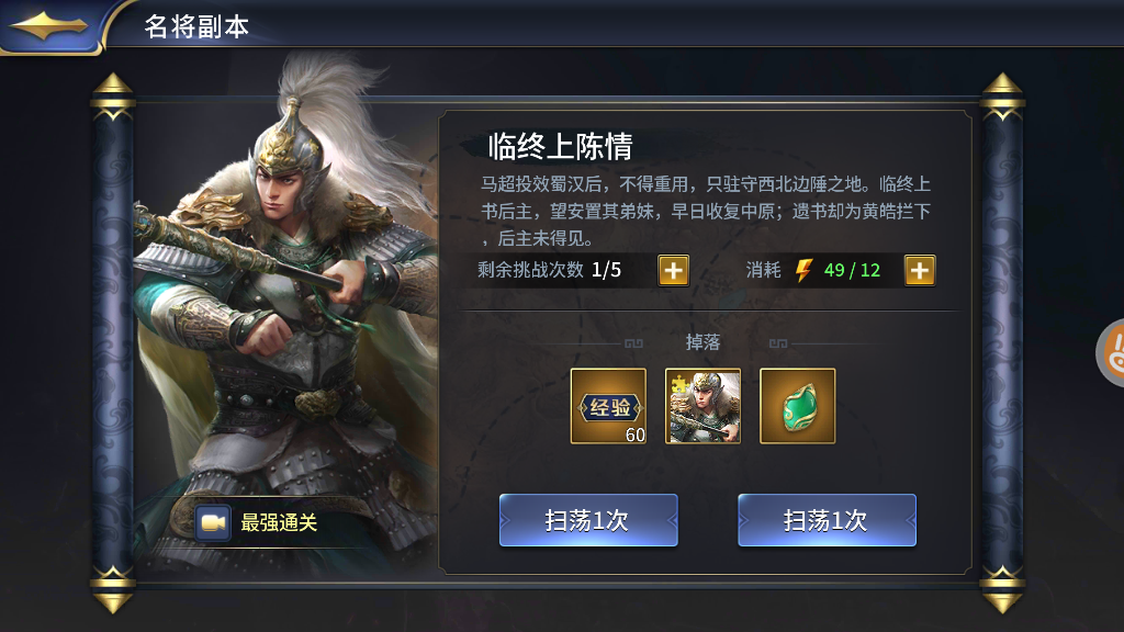 在“火烧藤甲兵”副本中可以产出升星石、“攻打郡邬”副本中可以产出大量银两。每天都来扫两次,积少成多了不起!!