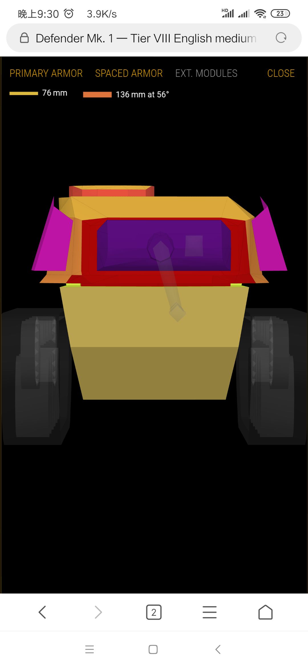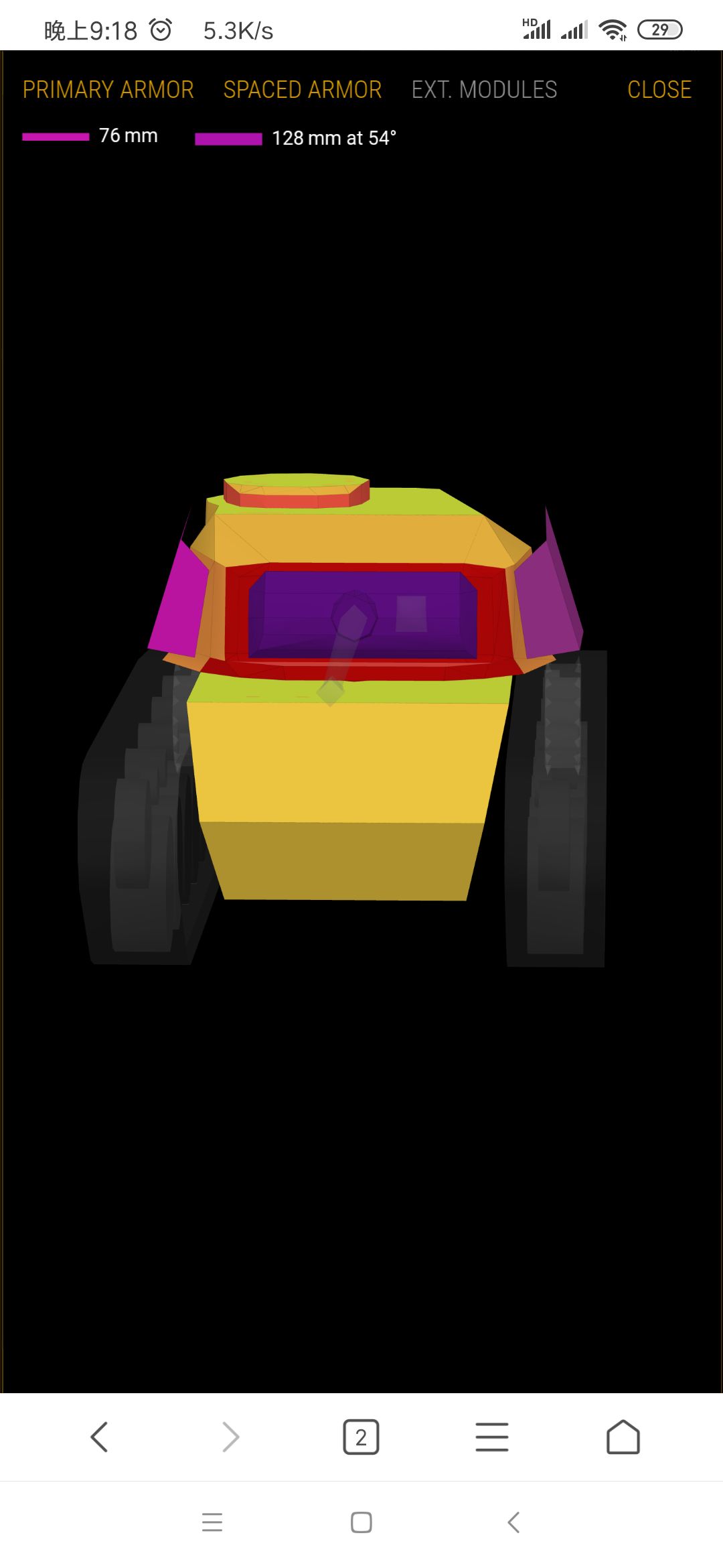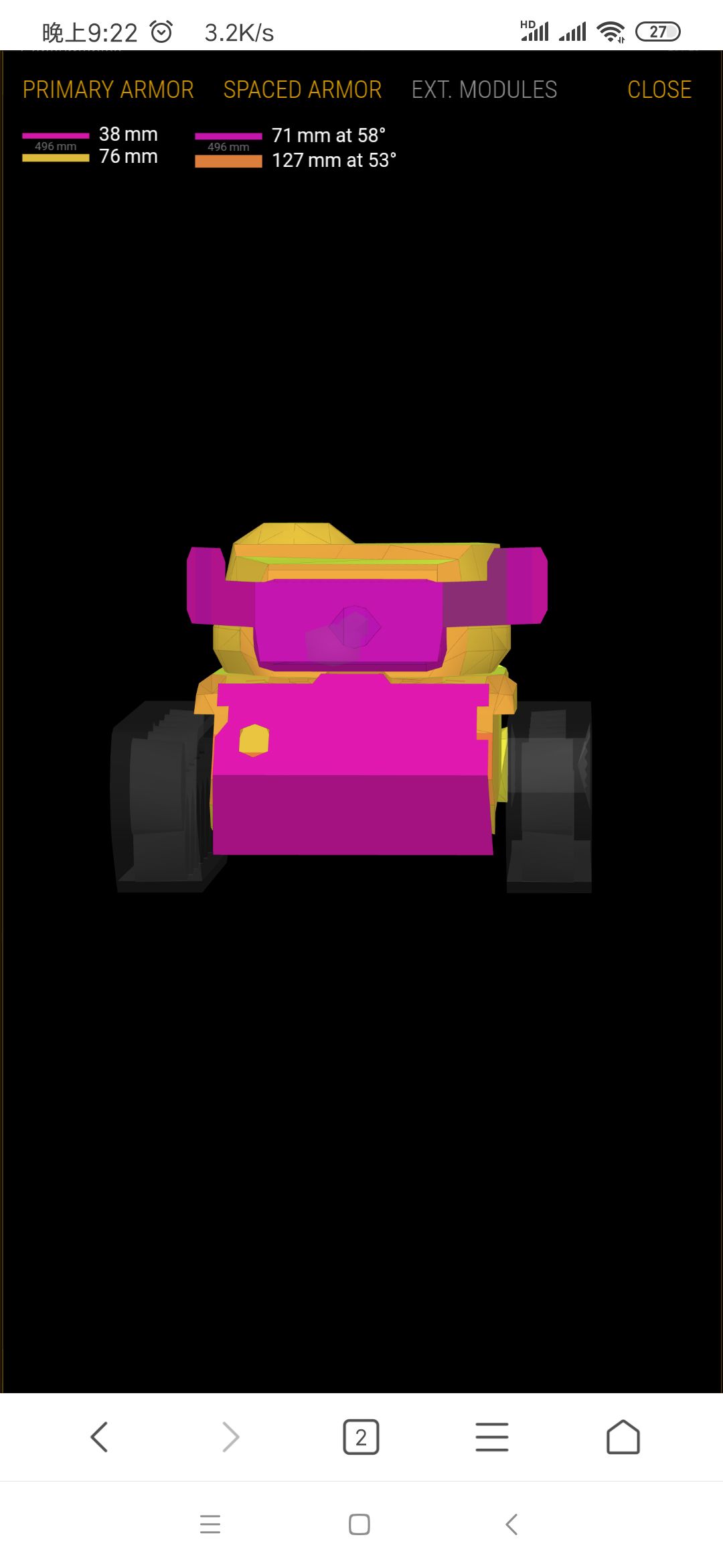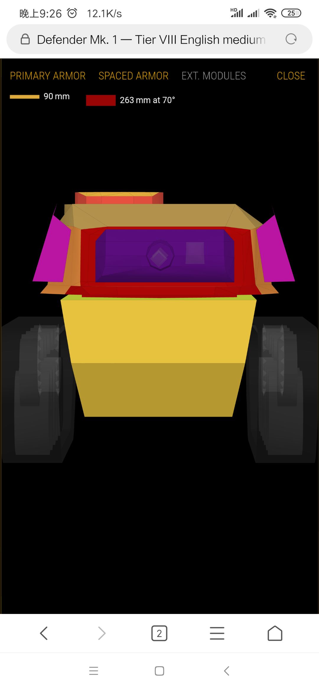 侧面很脆,52mm,刚好卡在了一个不会被150和152大管子三倍碾压的线上,会被大管子he糊穿,但因为侧面大部分被履带覆盖,he很容易砸到履带上。