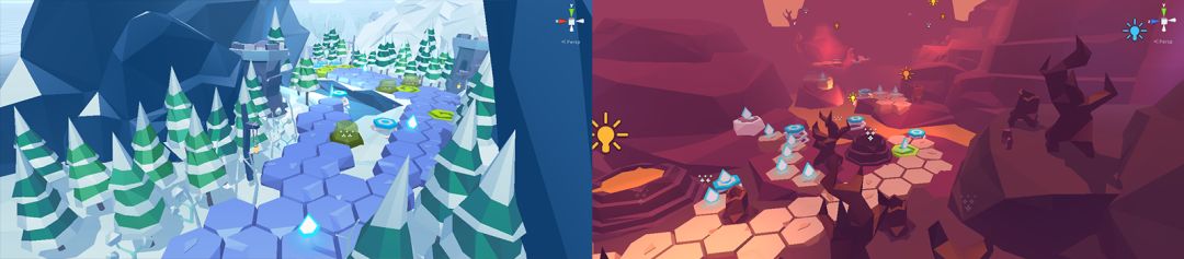 选用小狐狸的原因大概是因为比起人物跑不如动物跑来得更贴切吧。共有13个缤纷独特的三维星球:永恒冬天、燃烧的火山、习习海风、神秘森林...每个星球都极具个性却又不是整体的美感体验。