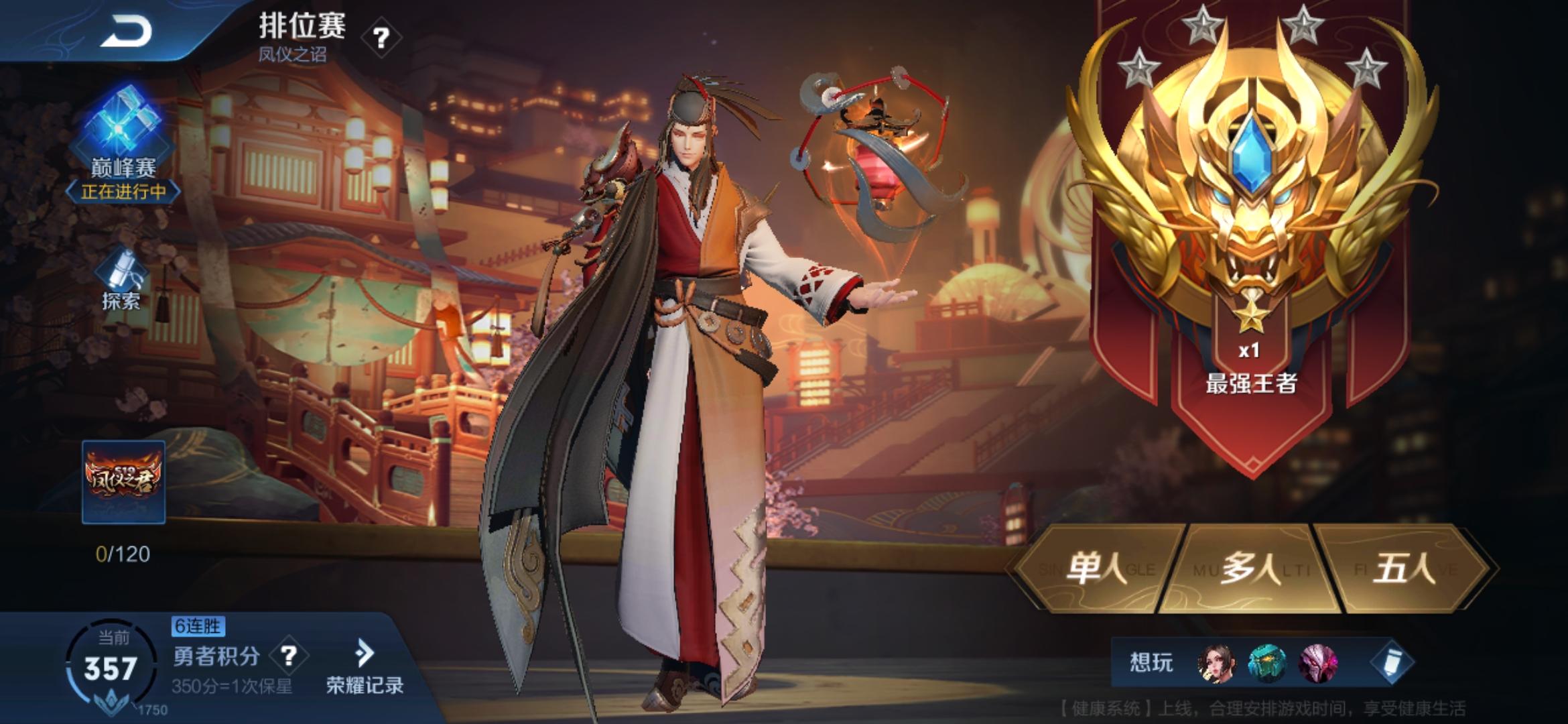 我是3天随便打打上的王者,左下角看,是6连胜,都是单排