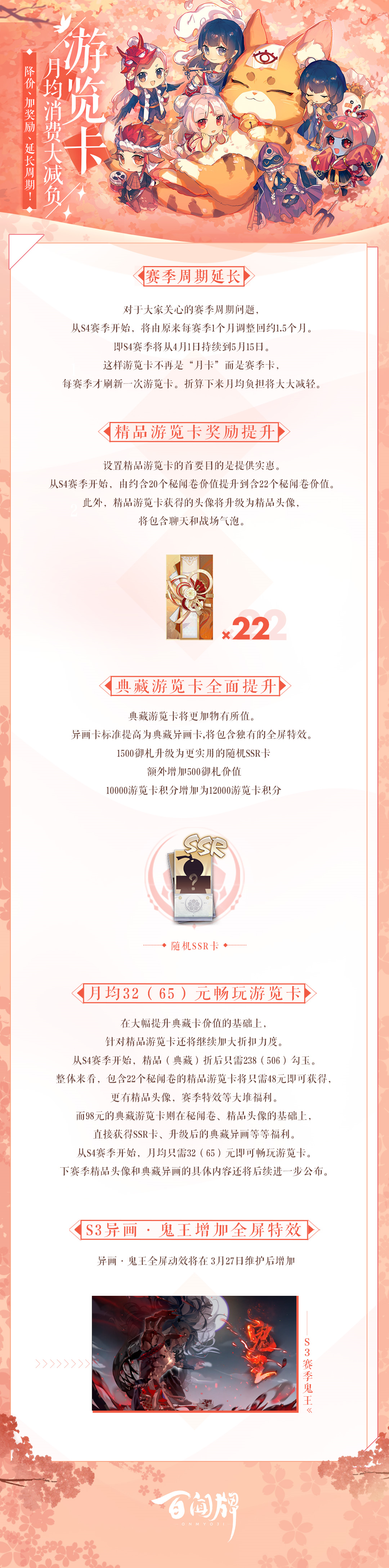 新赛季游览卡将做出以下调整,详情请看长图↓↓↓