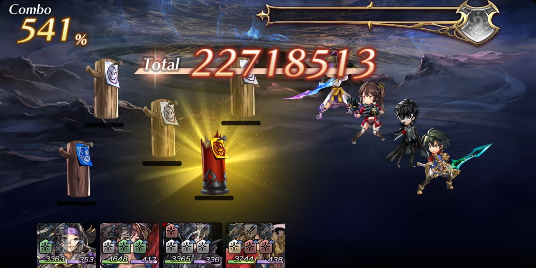 说是攻略其实也没什么诀窍,辰之国打圆木,白色原木是全弱。开场一般是3个白色2个蓝色,保险点干掉蓝色有4个白色半条以上af开打。只要用全体攻击角色且多连击,攻击动画时间不是太长的,配合vc加攻击buff,基本都可以达成。