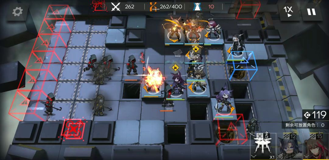 敌人一共有两名幽灵组长,都从右上方的洞口出来,我第一只是用能天使和阿米娅开技能直接秒掉,第二只是用可颂开技能眩晕打掉的。