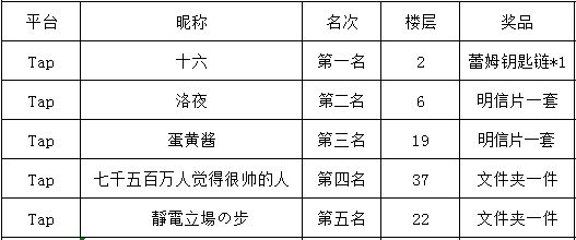 请以上获奖玩家在官方群内找“红茶兔2号(2185176755)”提交Tap个人信息截图确定身份,然后留下收件人以及联系方式和收件地址。