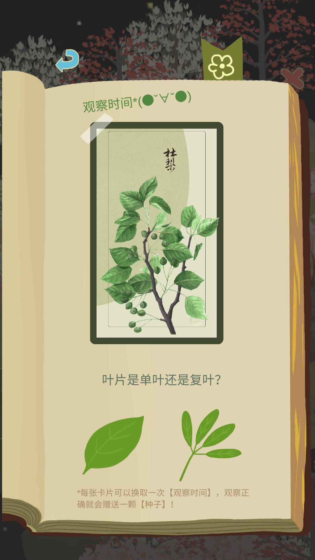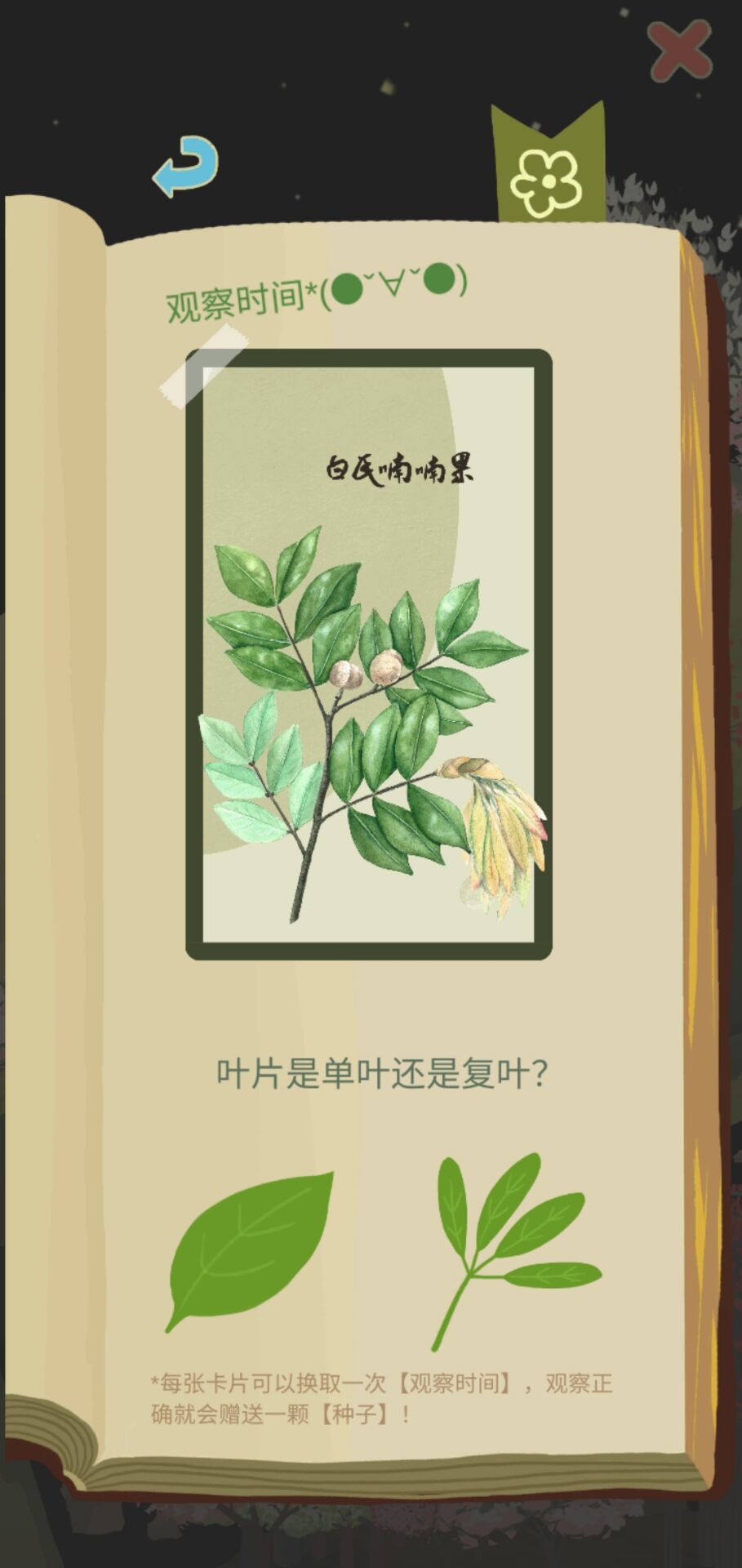 游戏里目前只有木棉跟白氏喃喃果是复叶,其余都是单叶。
