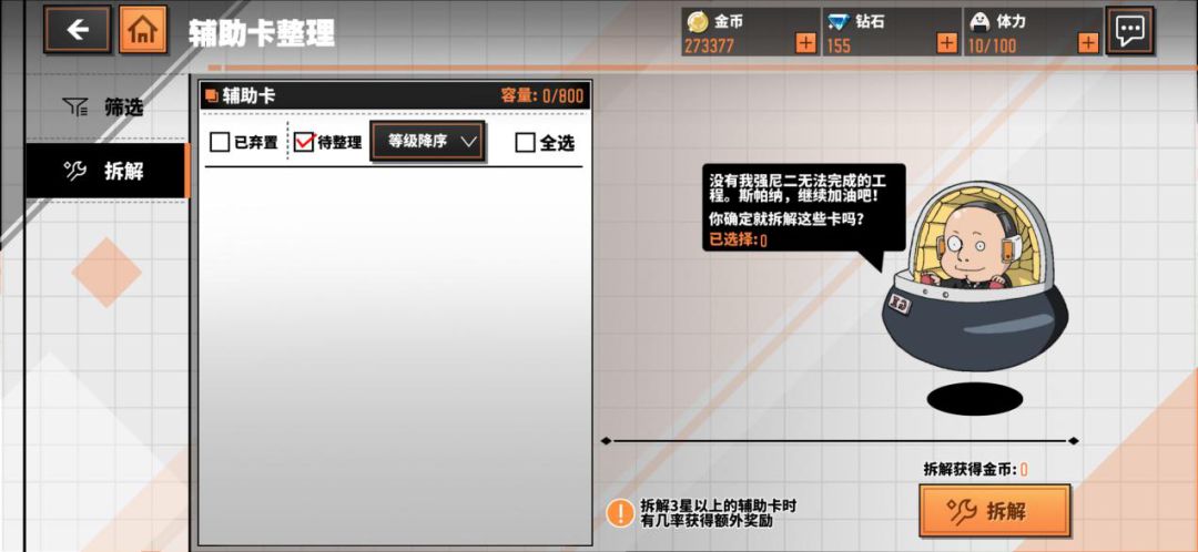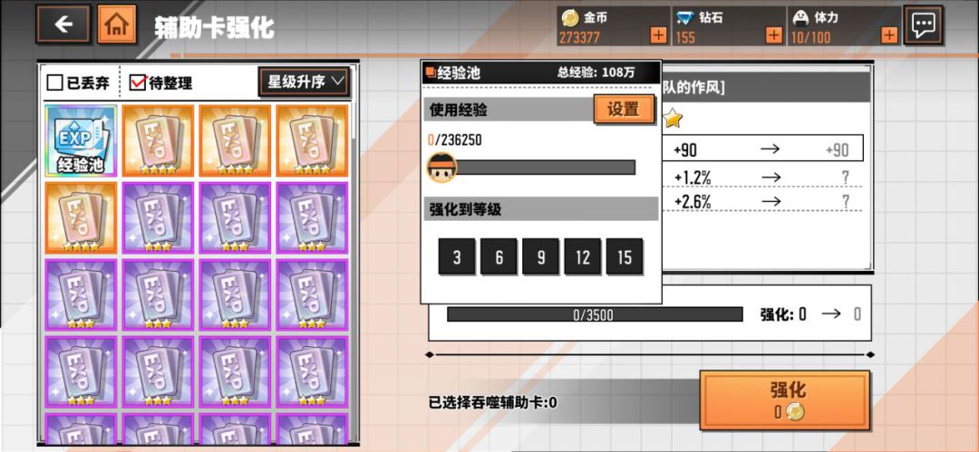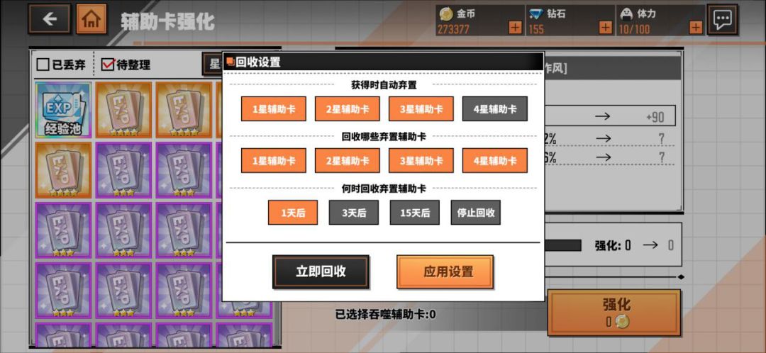 低星辅助卡可以通过自动弃置和回收的方式快速转化为经验池中的经验值