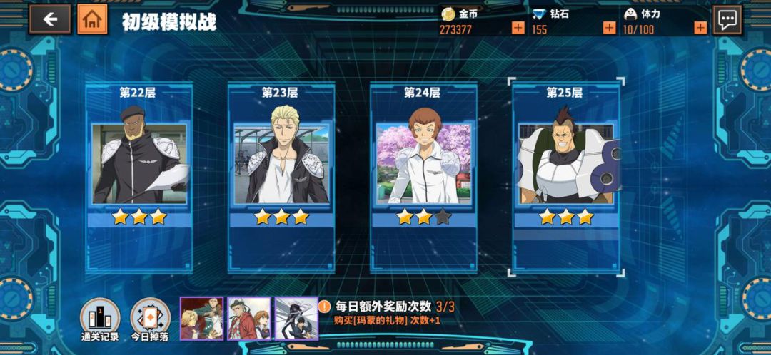 当然初级模拟战也可以爆出来,打之前留意“今日掉落”即可