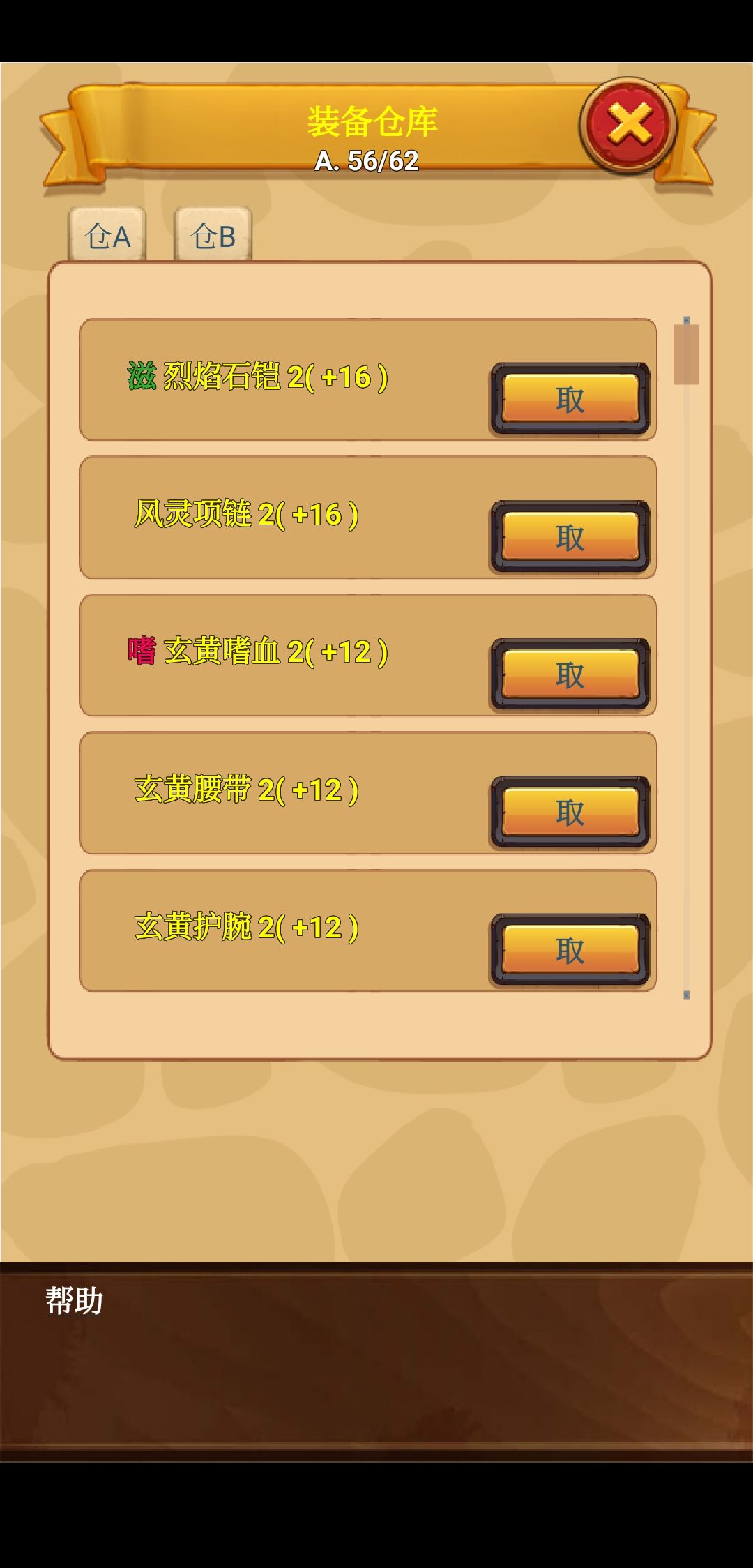可以把暂时不用的装备,存入装备仓库,新人开局难免背包不够用。而且随着转数的增加装备仓库的容量也会随之增加。(每5转增加2个格子)